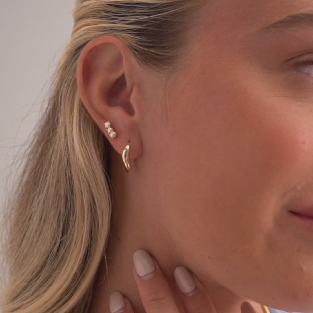 These Mini Pearl Cluster Flat Back Studs showcase a delicate cluster of three classic freshwater pearls, creating a demure and charming aesthetic. Their minimalist design offers a refined, sophisticated accent that complements any earscape—whether on the lobe, helix, or cartilage—making them a timeless addition to your jewelry collection.