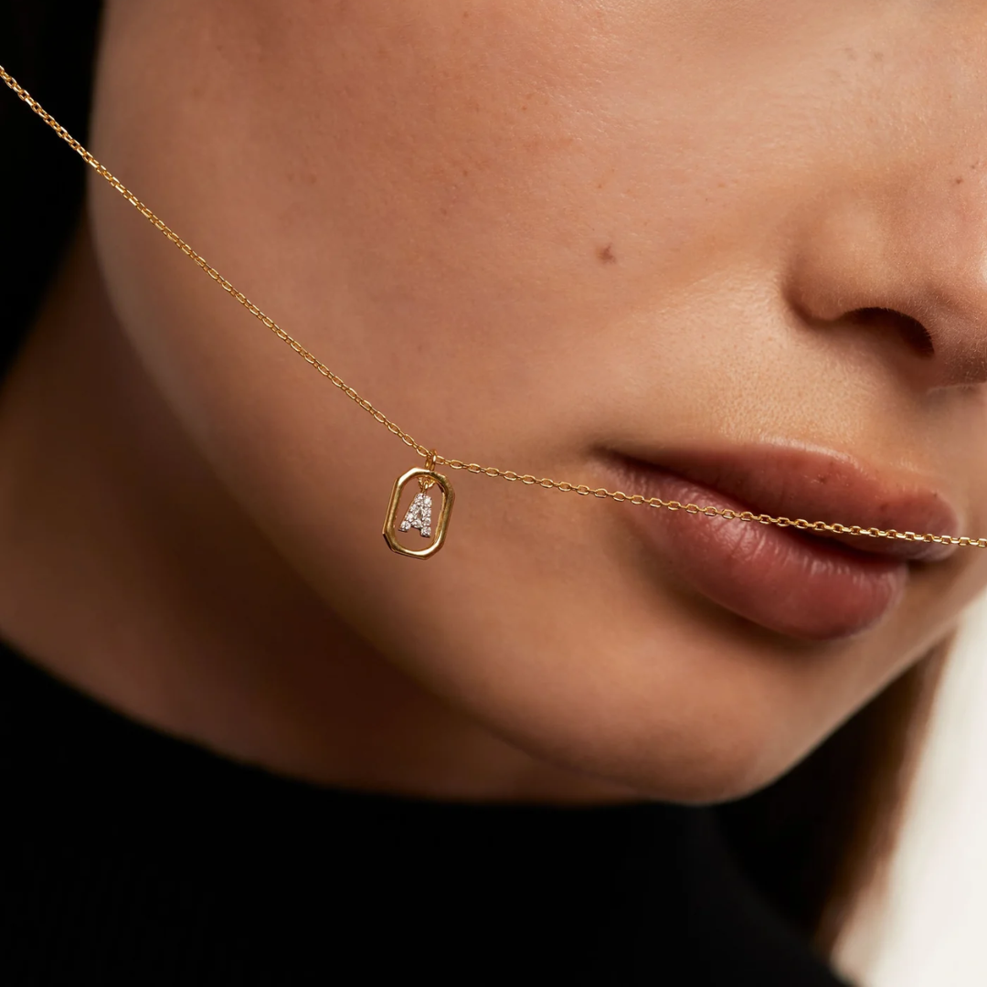 Elevate your ensemble with our Cubic Zirconia Mini Letter Necklace, where personalization meets refinement. The octagonal pendant showcases a delicate initial letter crafted from sparkling cubic zirconia, suspended from a luxurious gold-plated silver chain. This understated yet distinctive piece transitions effortlessly from day to evening wear, offering a subtle statement of individuality and elegance.