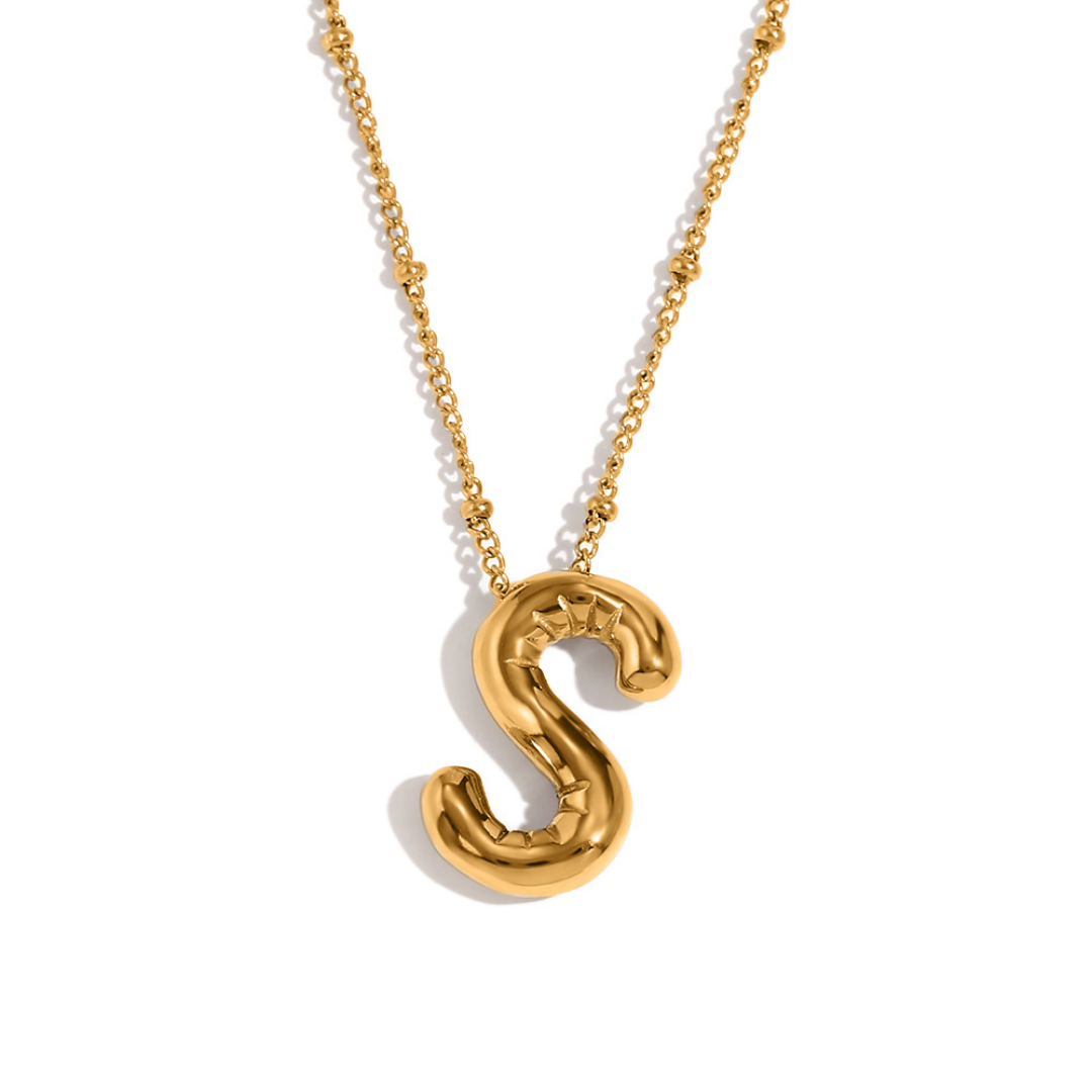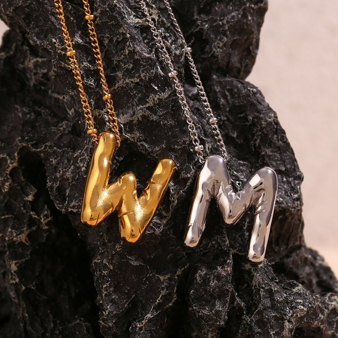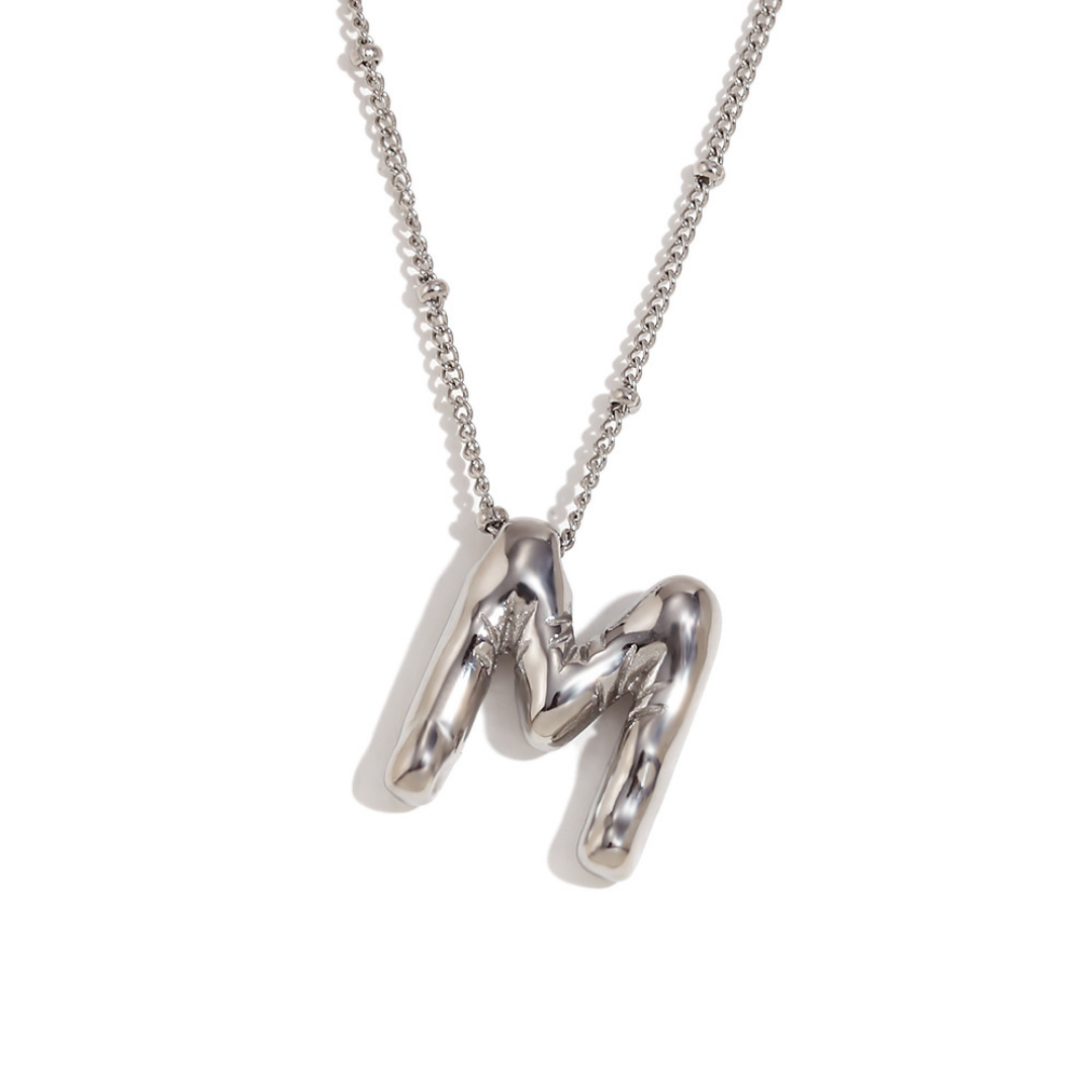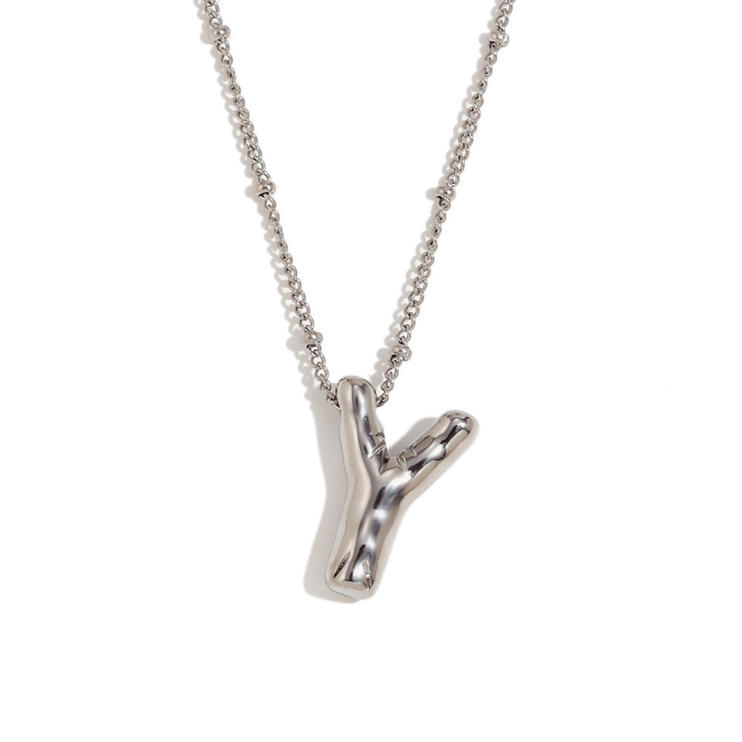 Add some playful glam to your outfit with our Glossy Bubble Letter Necklace! The vintage style initial letter necklace is available in gold or silver plating, with a shiny and balloon-like texture. A fun and playful accessory for any occasion!