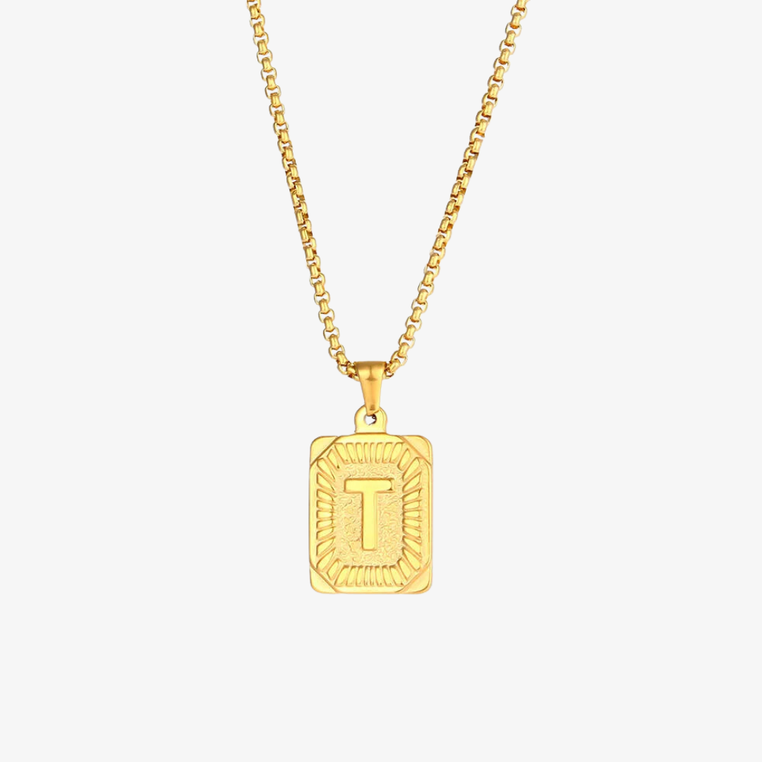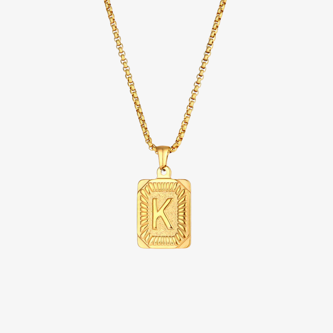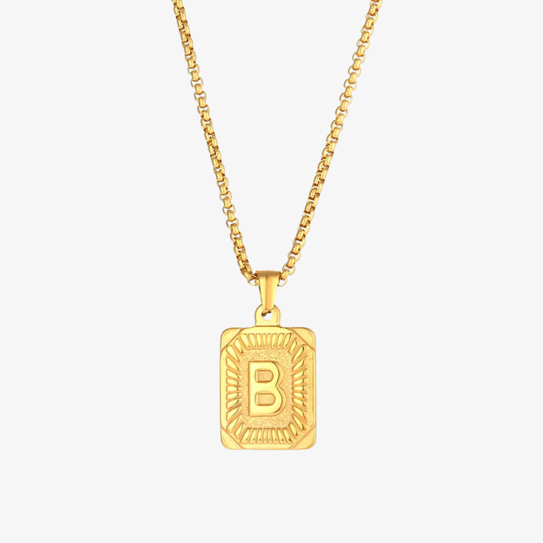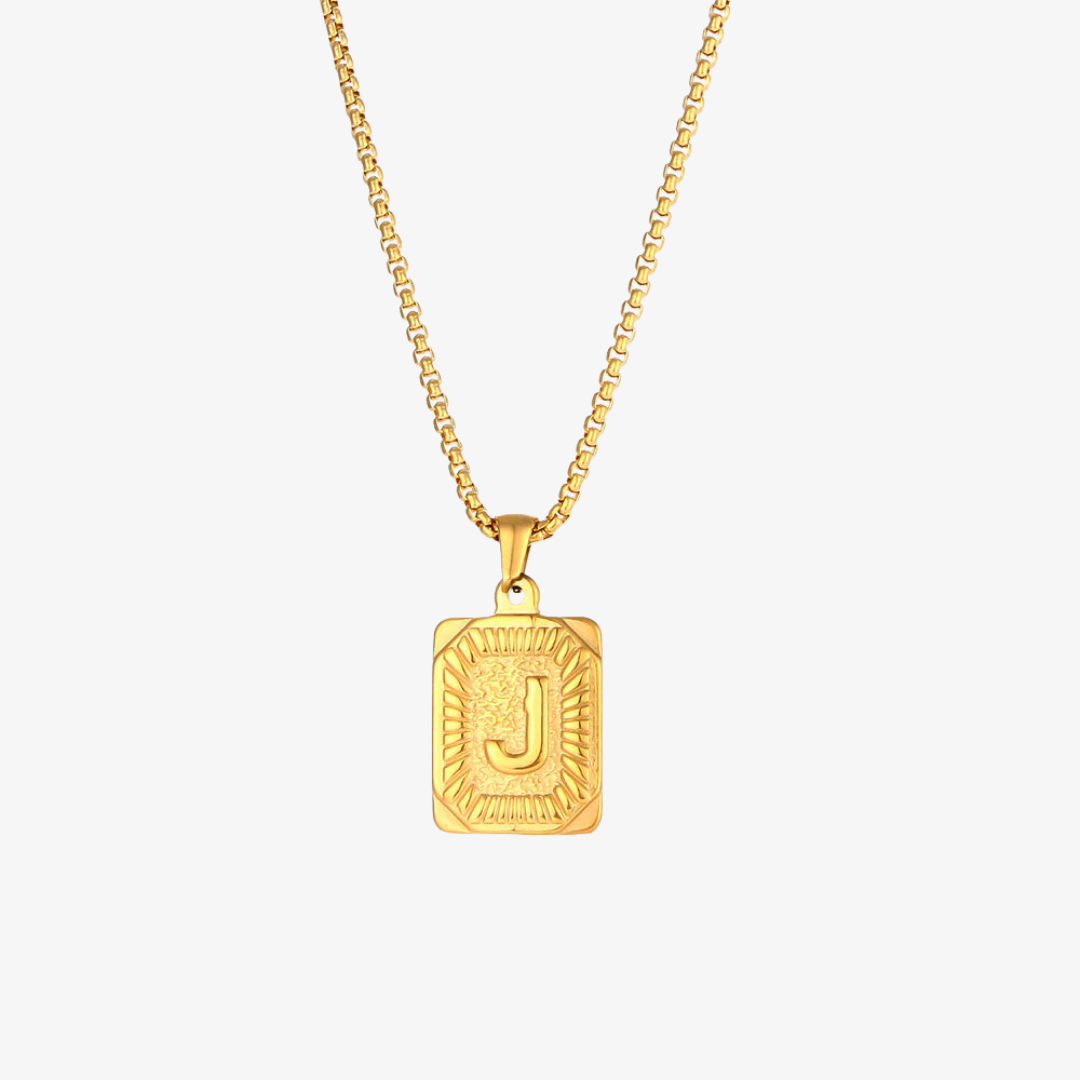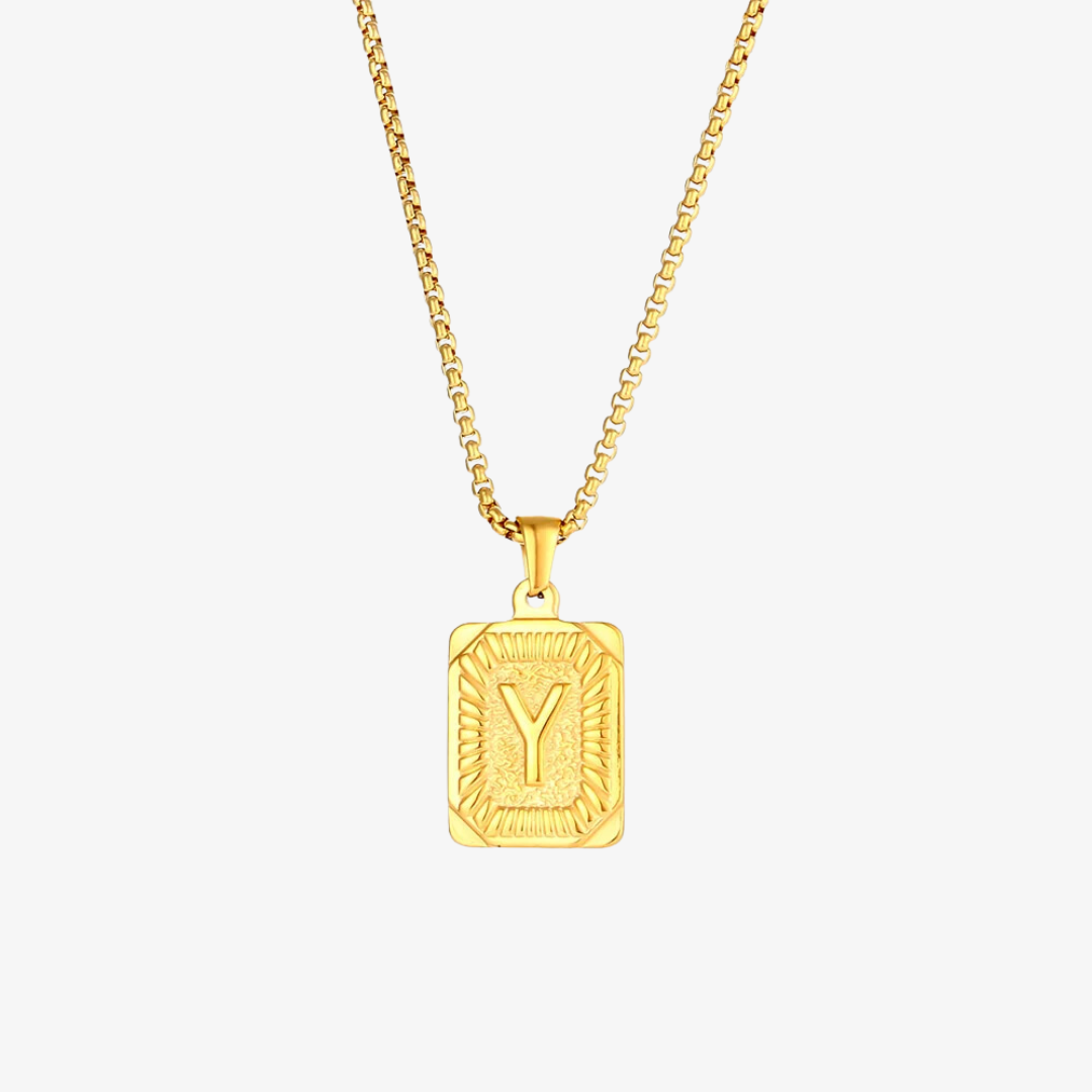 Elevate your attire with the distinguished Azura Square Initial Letter Pendant Monogram Necklace. This elegant personalized piece showcases your chosen letter, adding a touch of individuality to your look. Exquisitely crafted, this sophisticated accessory transitions seamlessly from everyday wear to special occasions, embodying timeless style and refined taste.