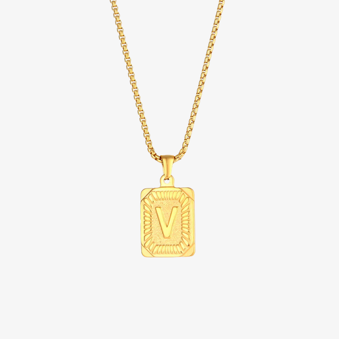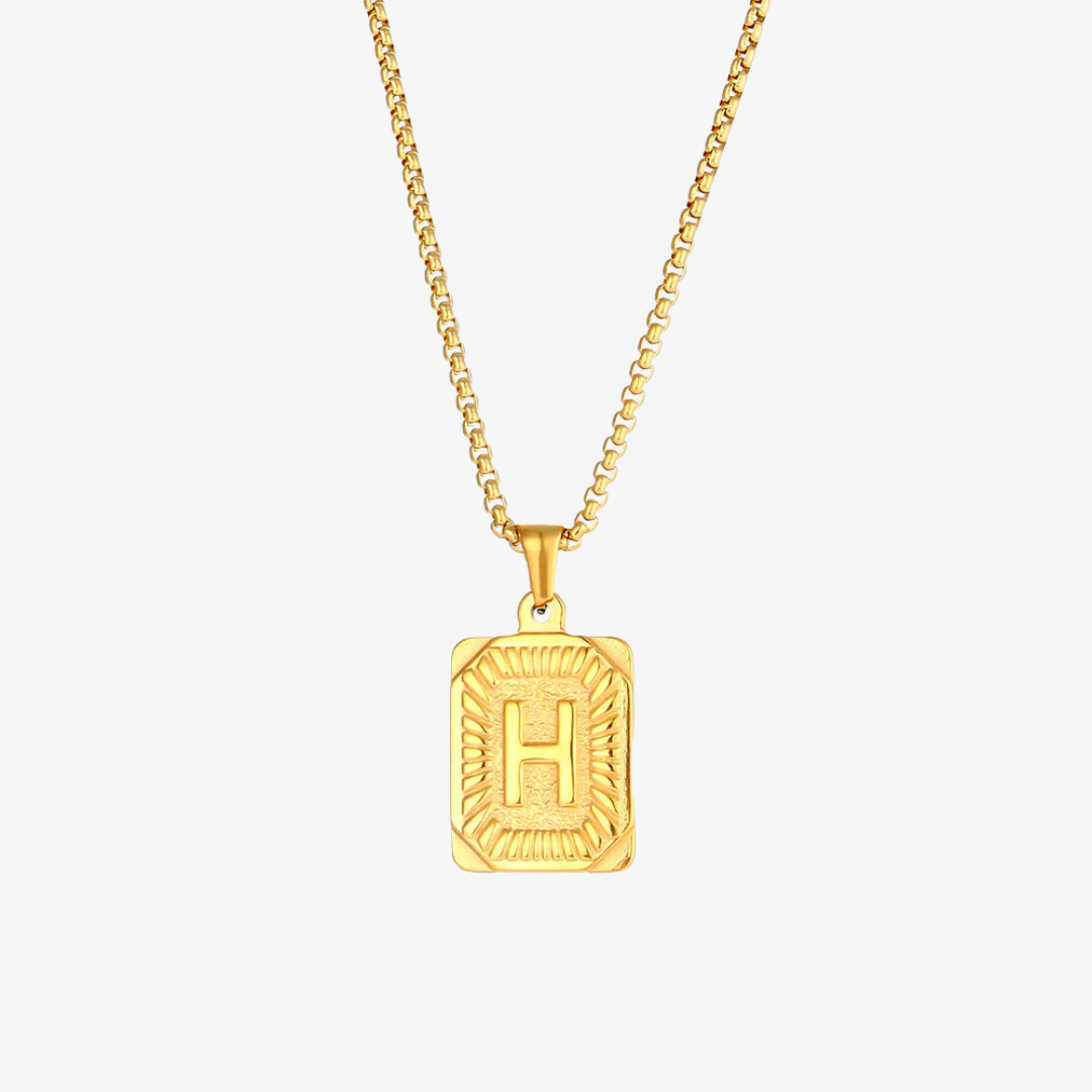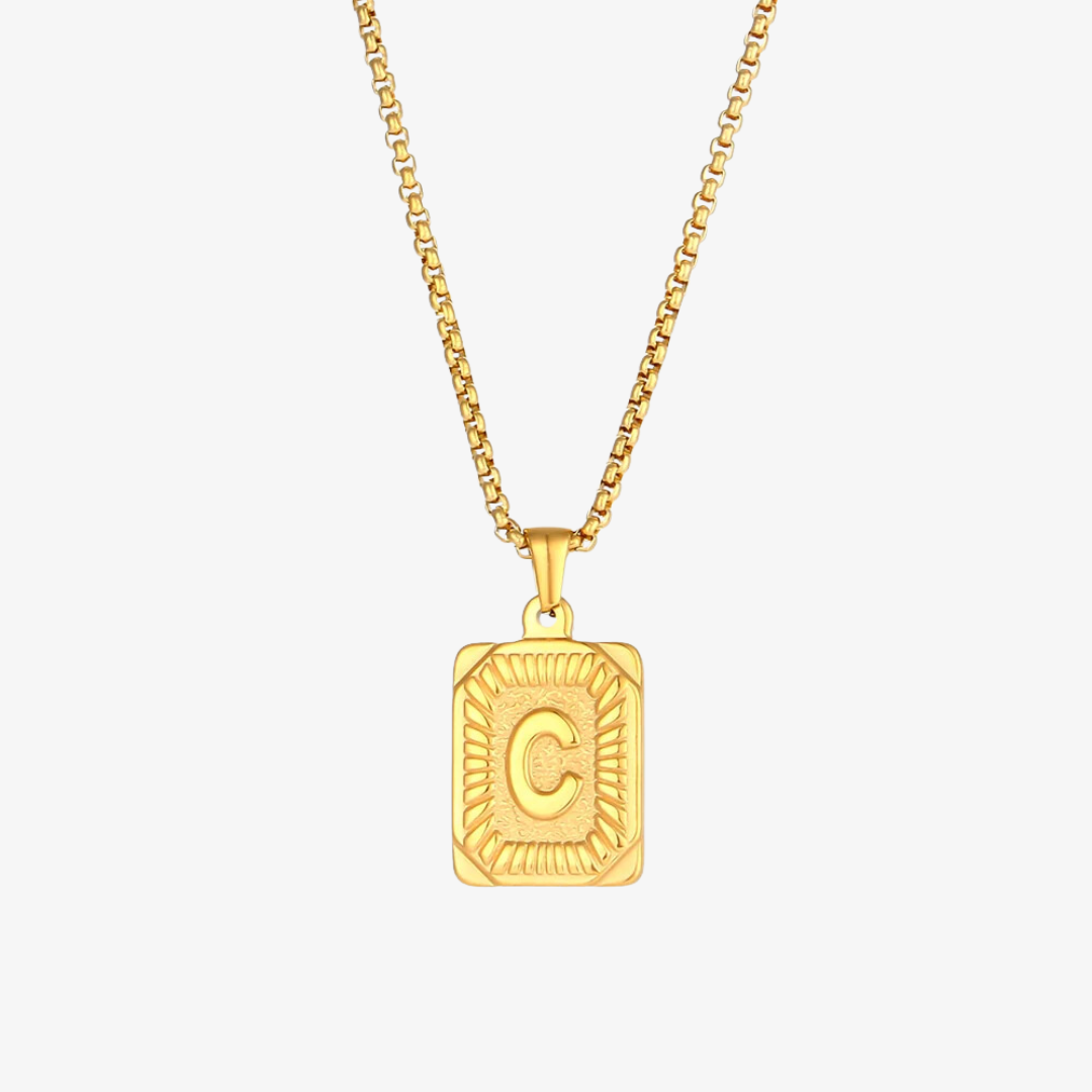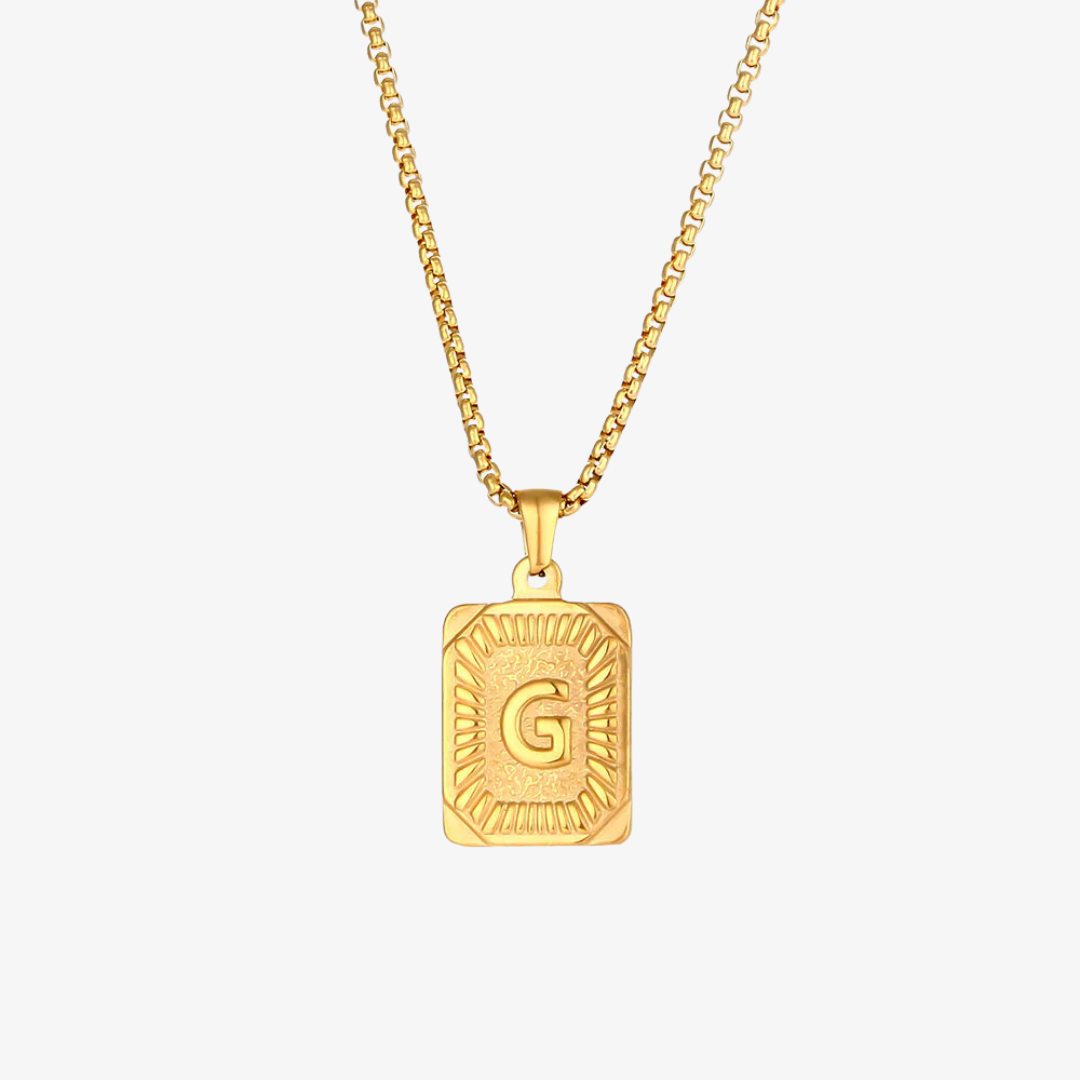 Elevate your attire with the distinguished Azura Square Initial Letter Pendant Monogram Necklace. This elegant personalized piece showcases your chosen letter, adding a touch of individuality to your look. Exquisitely crafted, this sophisticated accessory transitions seamlessly from everyday wear to special occasions, embodying timeless style and refined taste.