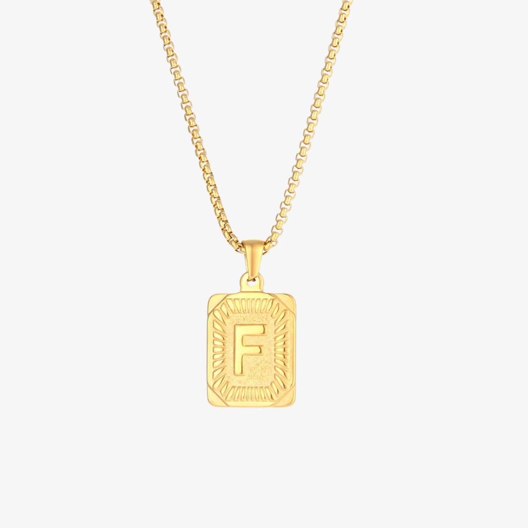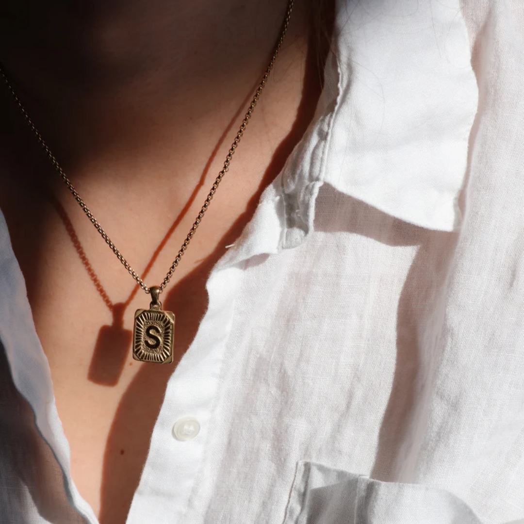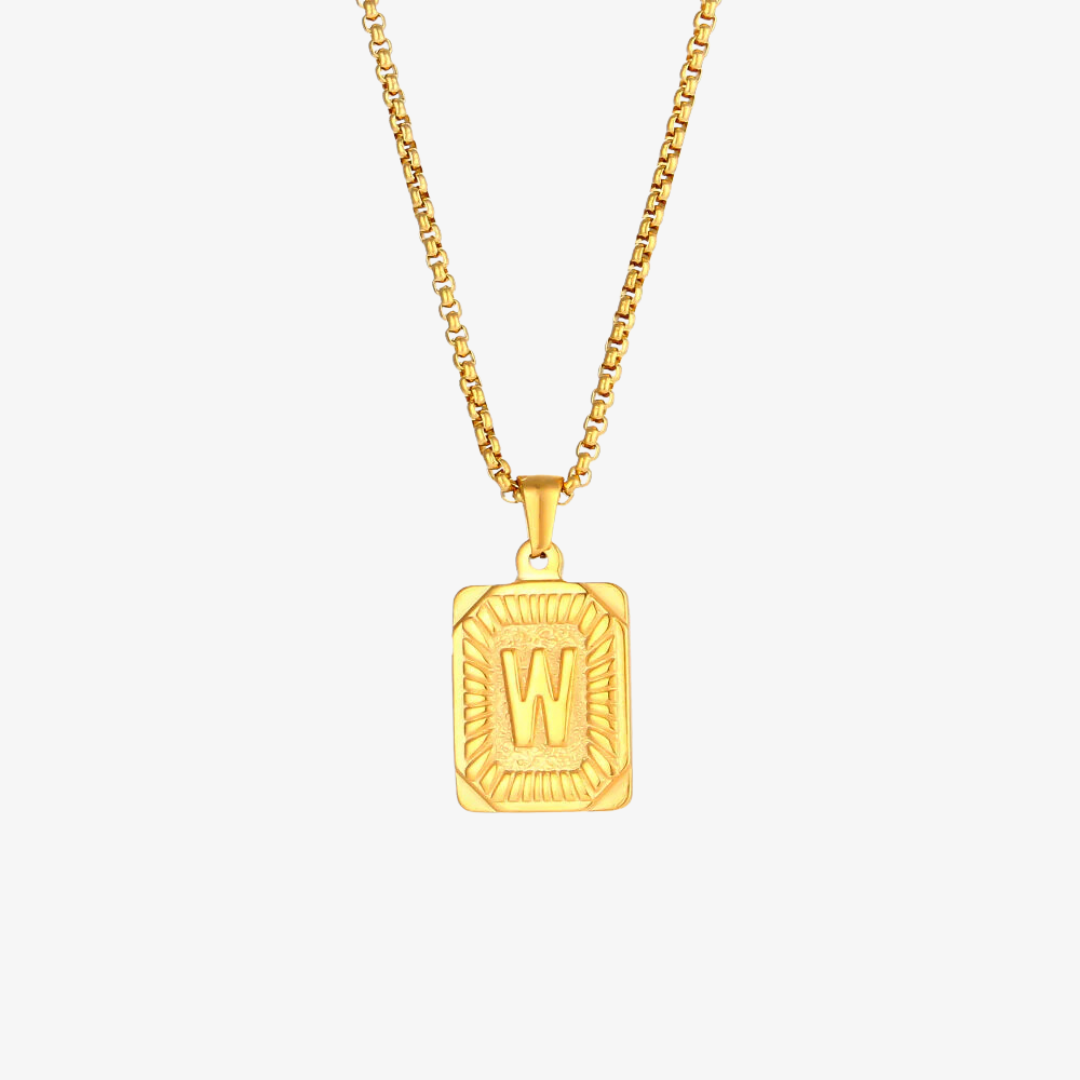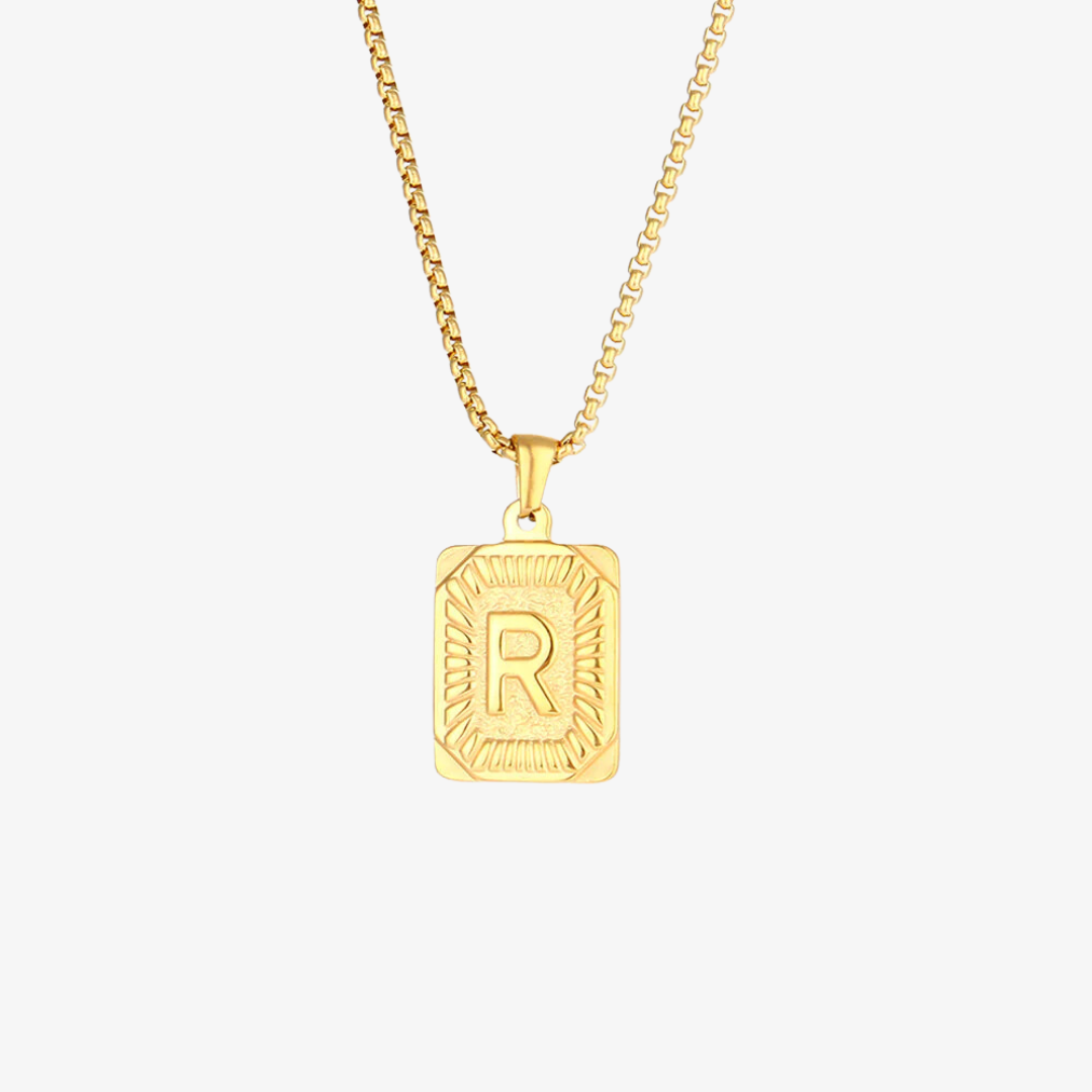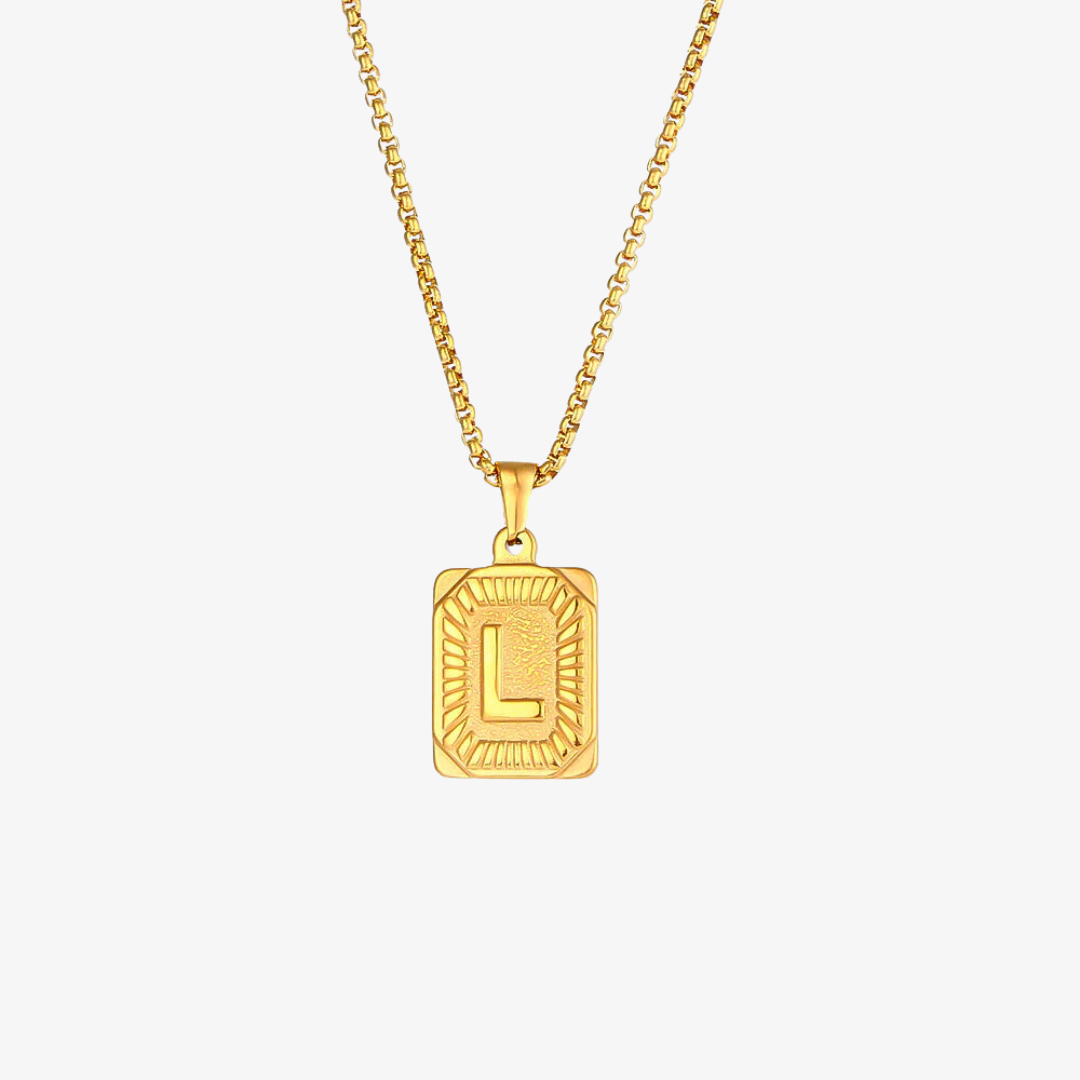 Elevate your attire with the distinguished Azura Square Initial Letter Pendant Monogram Necklace. This elegant personalized piece showcases your chosen letter, adding a touch of individuality to your look. Exquisitely crafted, this sophisticated accessory transitions seamlessly from everyday wear to special occasions, embodying timeless style and refined taste.