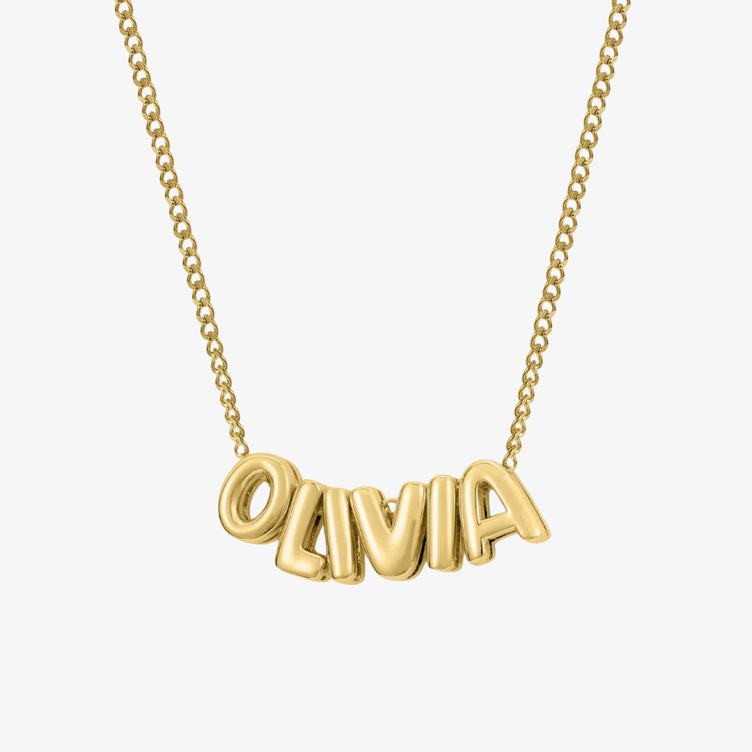 Introducing the Azura Custom Name Bubble Necklace, a personalized statement piece perfect for a special someone. Each necklace is customized with your name, adding a touch of elegance and charm. Complete with a pearl chain, it makes for a luxurious and thoughtful gift. Elevate your style with this statement piece.