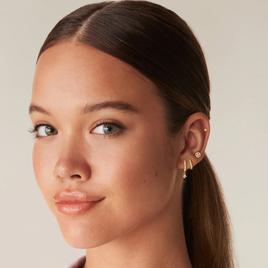 Elevate your jewelry collection with our Smiley Face Flat Back Stud Earrings. These refined adornments offer both elegance and comfort, designed to be worn effortlessly day and night. The secure screw back mechanism ensures these charming studs remain perfectly positioned whether styled alone for subtle sophistication or incorporated into a curated earring arrangement. A delightful expression of refined taste.