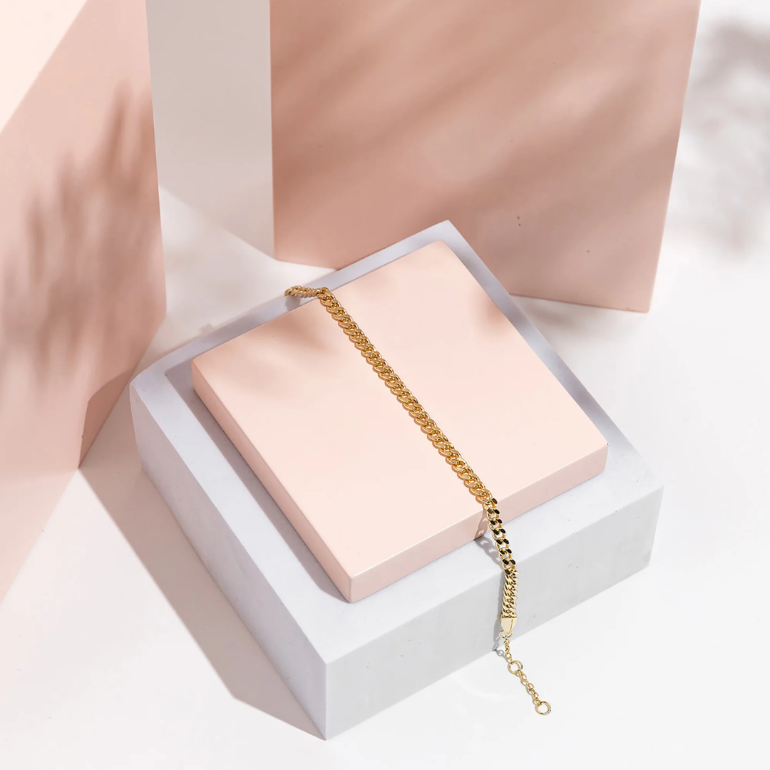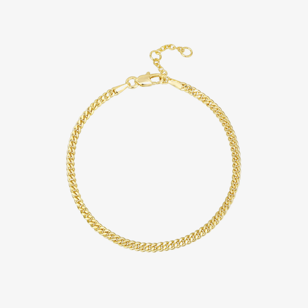 Crafted with 14k gold plating, this adjustable Curb Chain Bracelet embodies effortless elegance for everyday wear. Its classic design allows it to shine alone or layered with other pieces, offering versatile sophistication that enhances any ensemble.