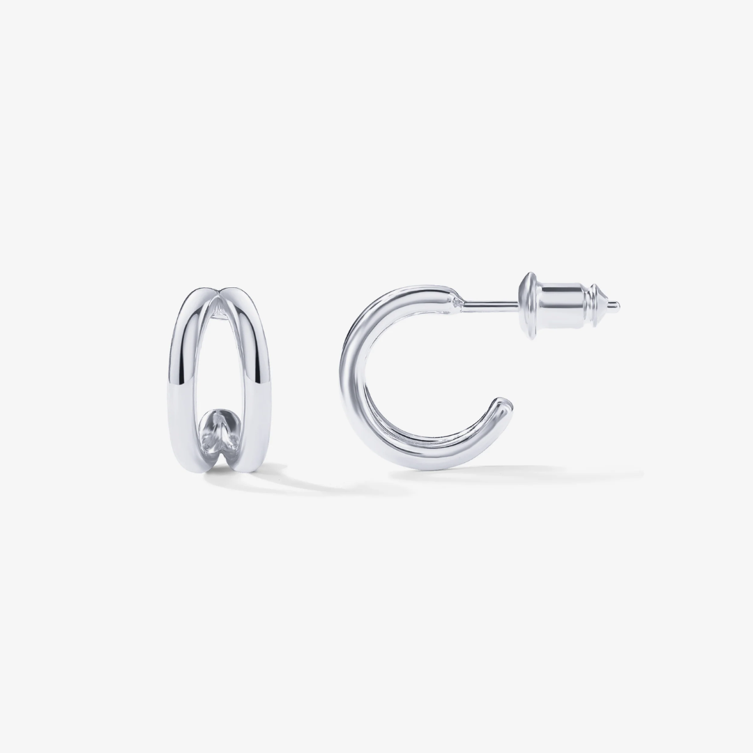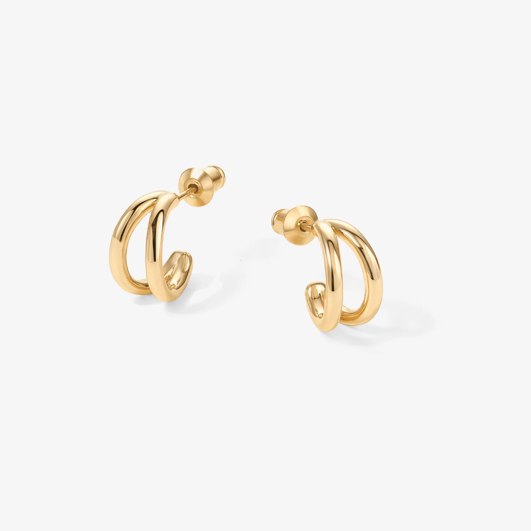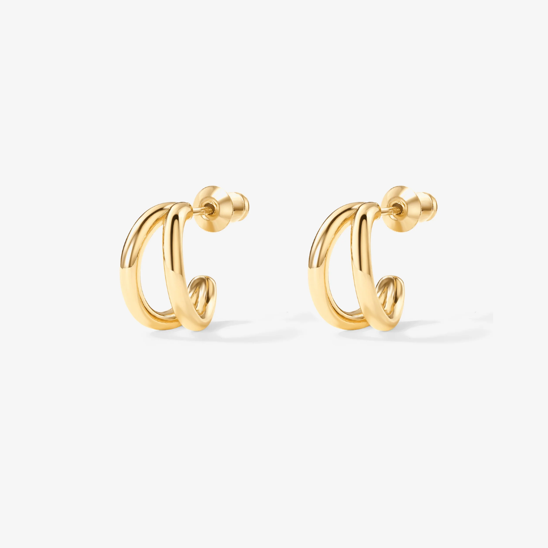 The Gia Double Open Hoops offer a sleek, modern design that creates a bold statement with just one piercing. Their elegant silhouette gently hugs the ear, delivering a sophisticated look that effortlessly enhances any outfit. Perfect for those seeking understated yet impactful style.