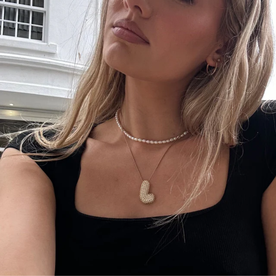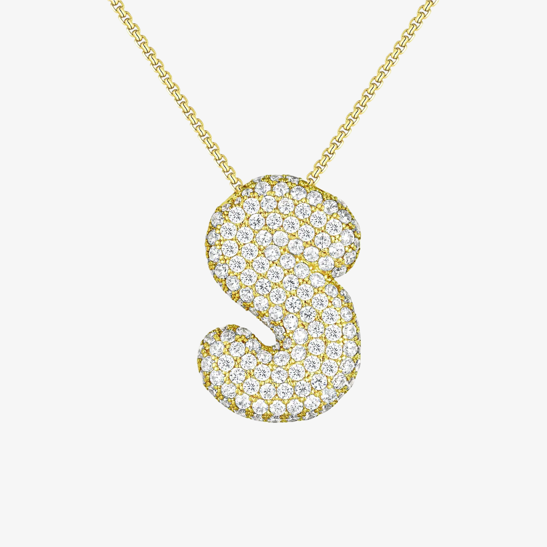Elevate your style with our Diamond Initial Letter Necklace. Choose your favorite letter, each adorned with sparkling Cubic Zirconia stones in 14k gold or silver. Make a statement and embrace the Y2K trend with this bold, unapologetic accessory. (Feel free to call it "drippin' with diamonds" - we won't judge.)
