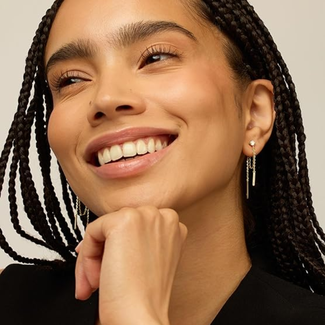 Our jewelry is made from high-quality stainless steel and finished with a luxurious layer of 14k or 18k gold or silver. This durable material resists tarnishing and fading, offering greater longevity than traditional gold, silver, or even platinum. It won’t discolor your skin and retains its brilliant shine over time.
