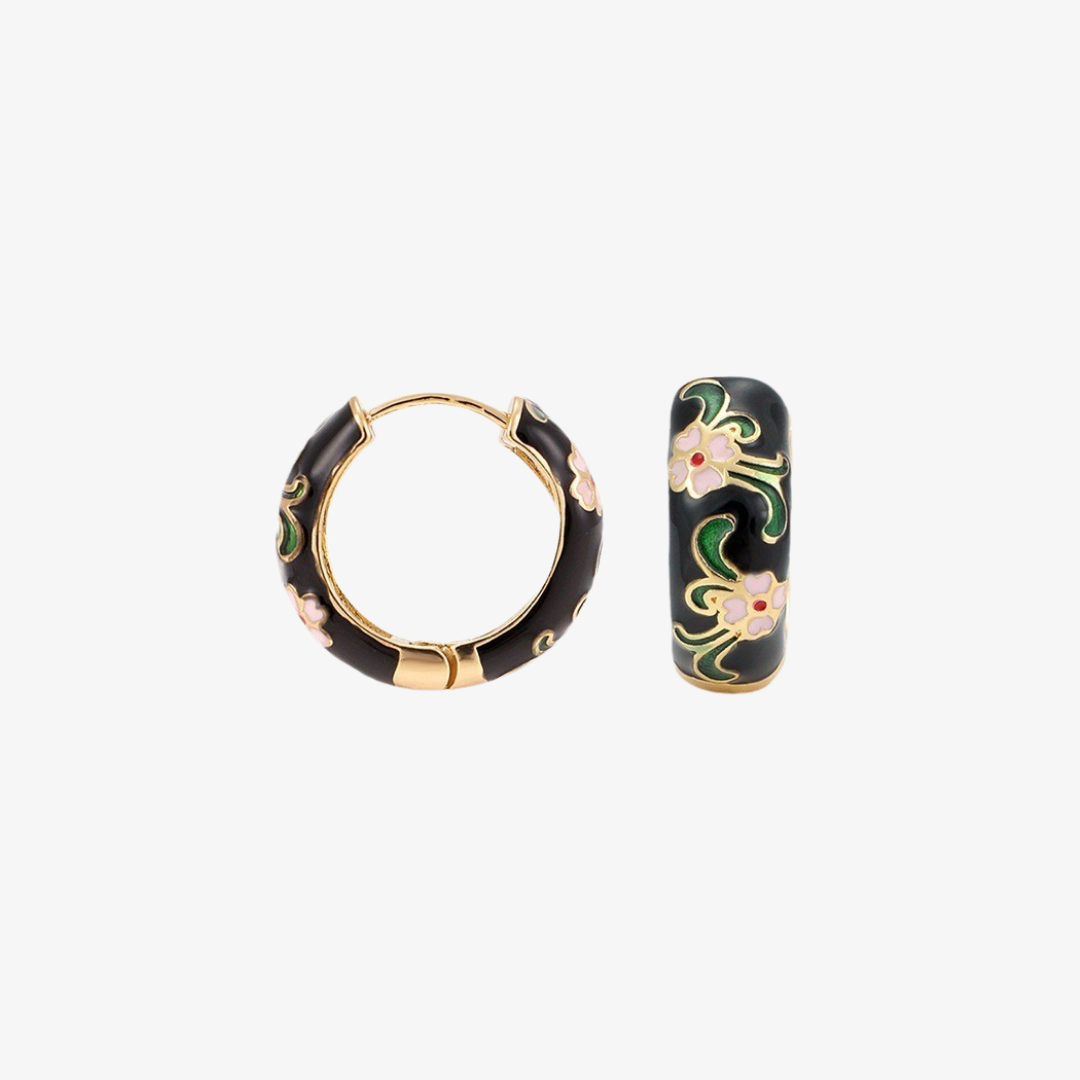 Elevate your evening ensemble with the Sakura Flower Enamel Hoop Earrings. Featuring an intricate floral design, these hoops blend delicate artistry with a timeless silhouette, making them perfect for a sophisticated night out. Their subtle enamel finish adds refined color and texture, ensuring you stand out with elegant grace.
