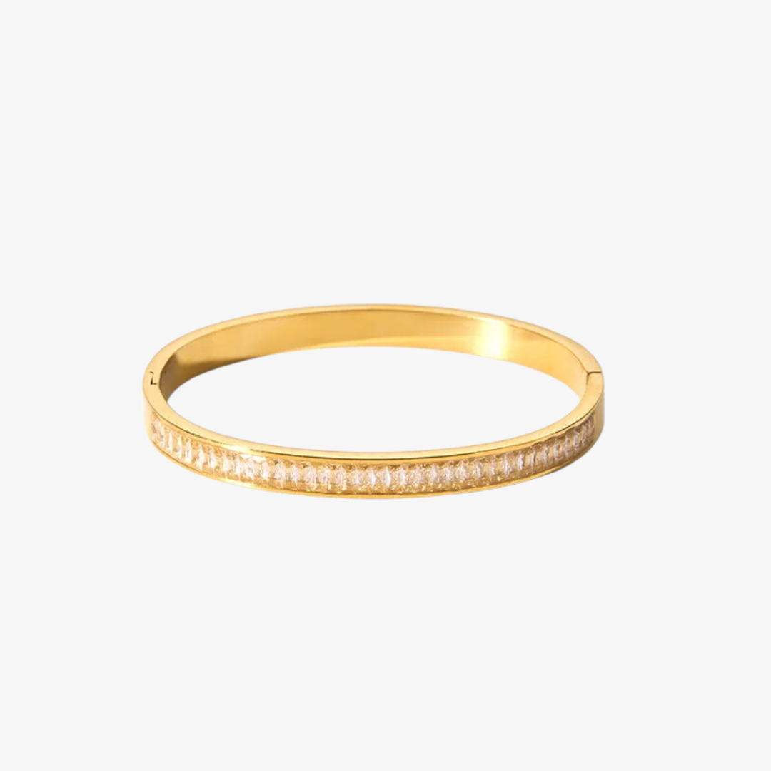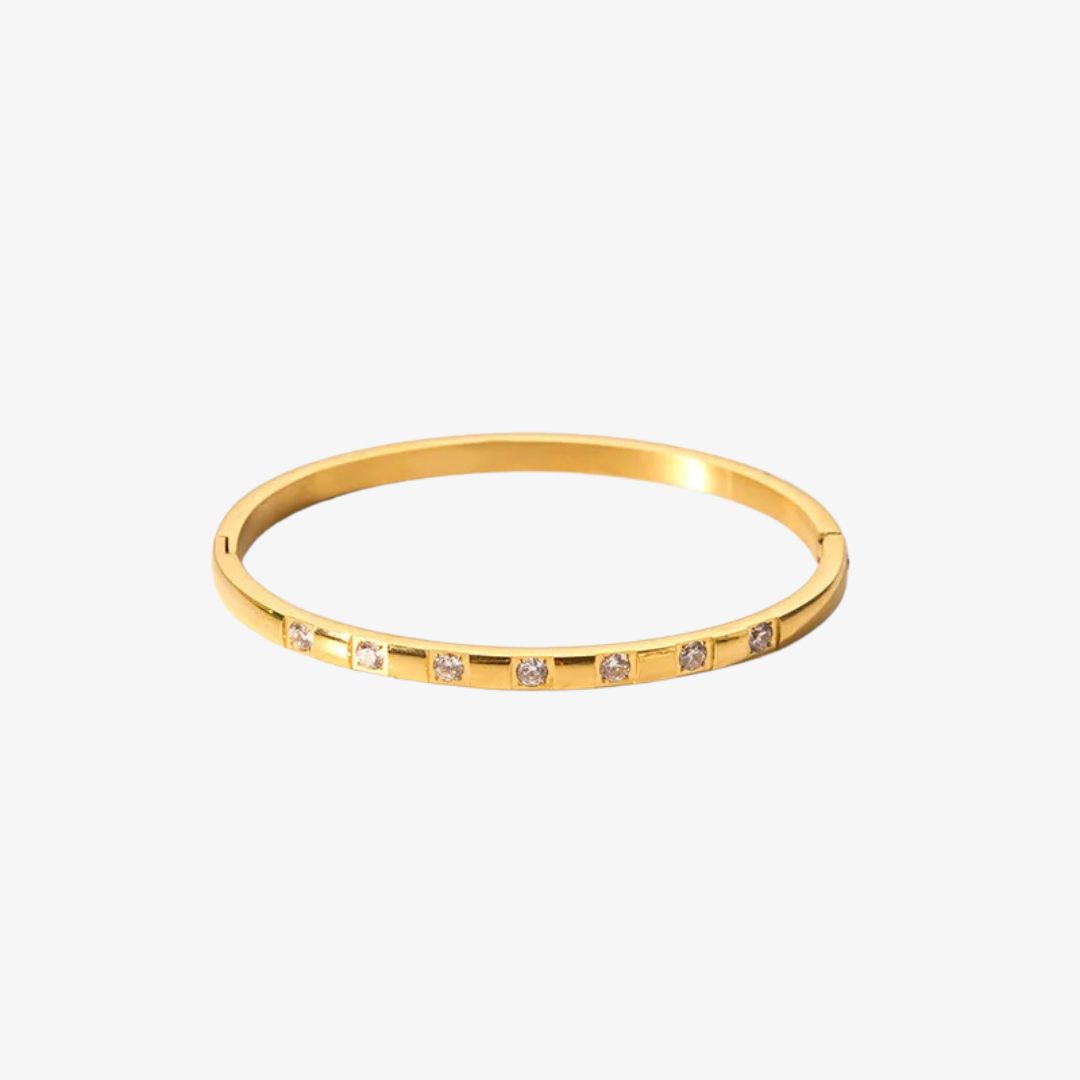 Indulge in the ultimate luxury of the Juliette 9-Piece Bangle Bracelet Set. This stunning set features nine unique bangle designs crafted in gold and adorned with sparkling cubic zirconia diamonds. Elevate your look with a touch of elegance and glamour.