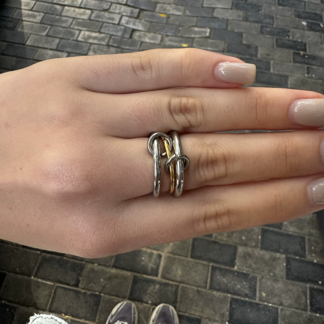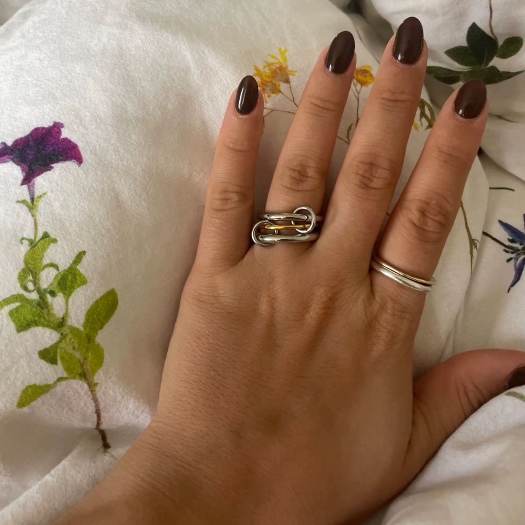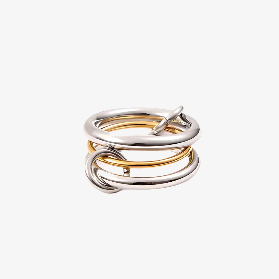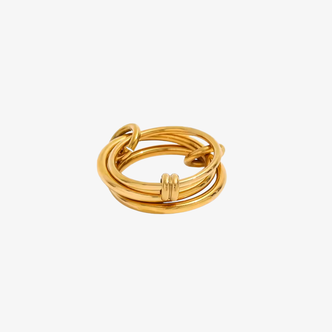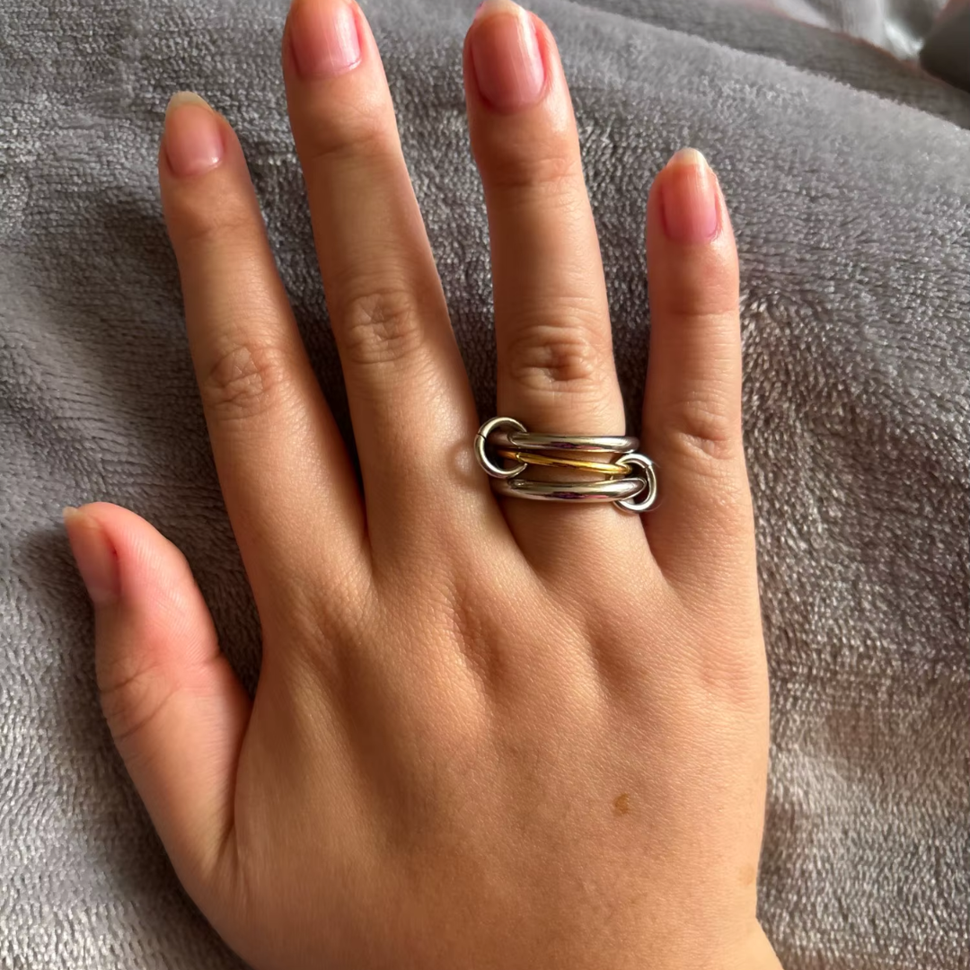 Take your ring game to the next level with the Triple Linked Chain Ring. This stackable ring features three elegant rings linked together in gold and silver stainless steel. Perfect for everyday wear, or dress it up for a night out. Go ahead, stack up the compliments. (Get it? Stack? We'll show ourselves out.)