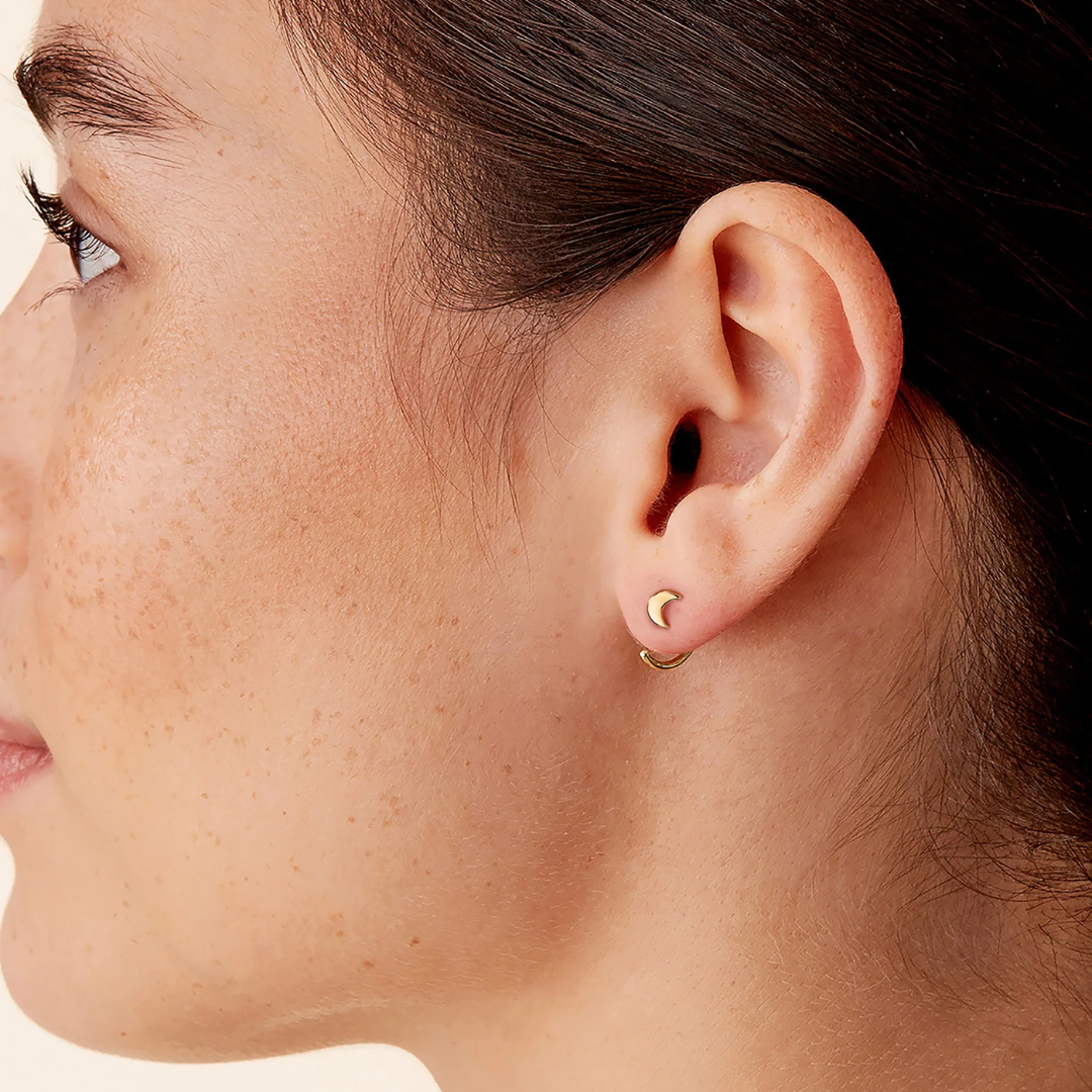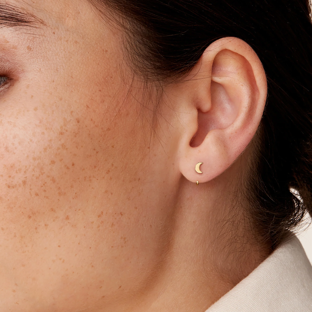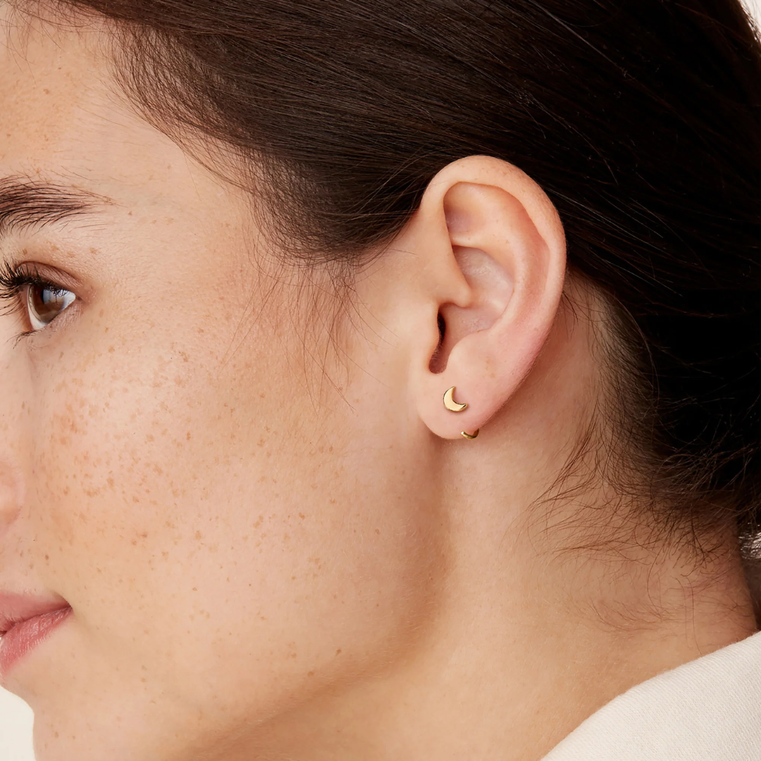 A classic design, wear our moon half-hoop huggie earrings to easily add a dose of sparkle to every OOTD.