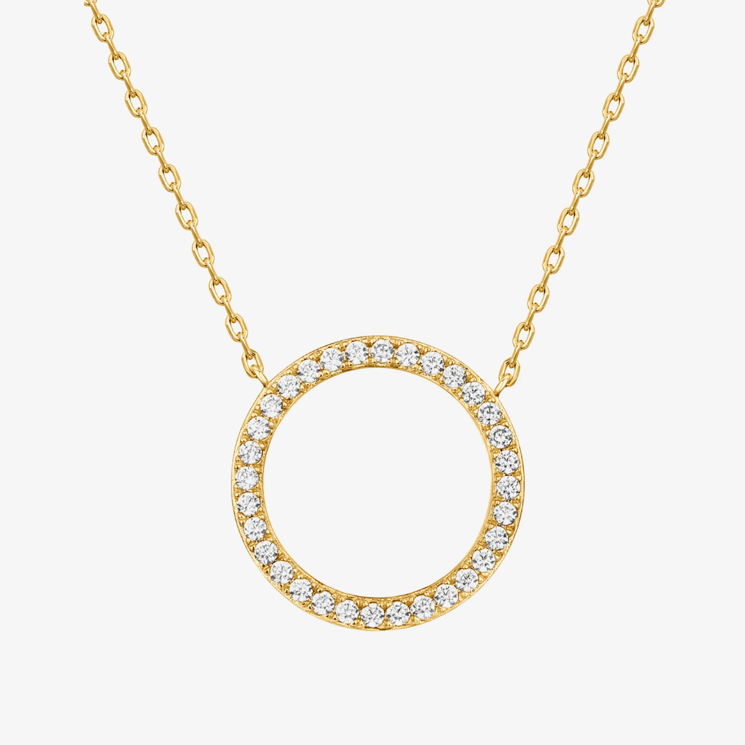 Elevate any look with our essential Open Circle Pendant Necklace. The classic design and 14K gold-plated finish exude luxury and elegance. A perfect gift for special occasions or to treat yourself. Transform your outfit with this chic and sophisticated piece.