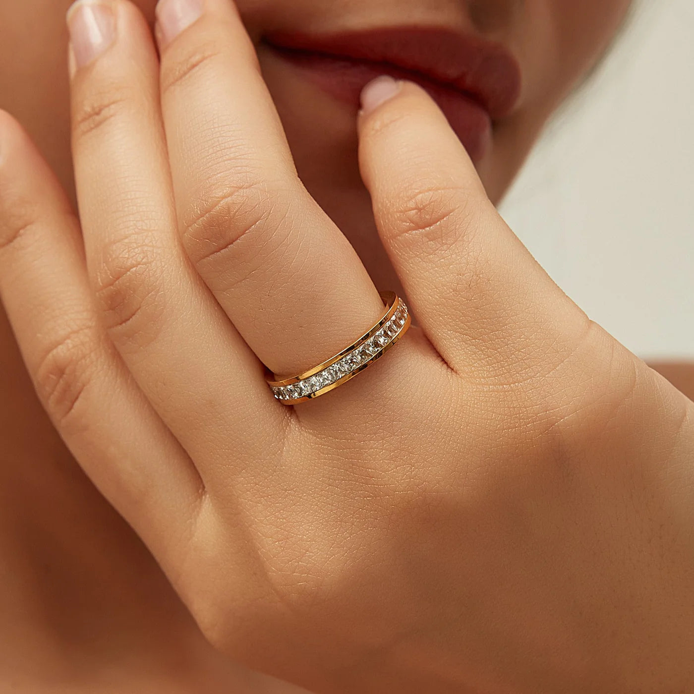 Our jewelry is made from high-quality stainless steel and finished with a luxurious layer of 14k or 18k gold or silver. This durable material resists tarnishing and fading, offering greater longevity than traditional gold, silver, or even platinum. It won’t discolor your skin and retains its brilliant shine over time.