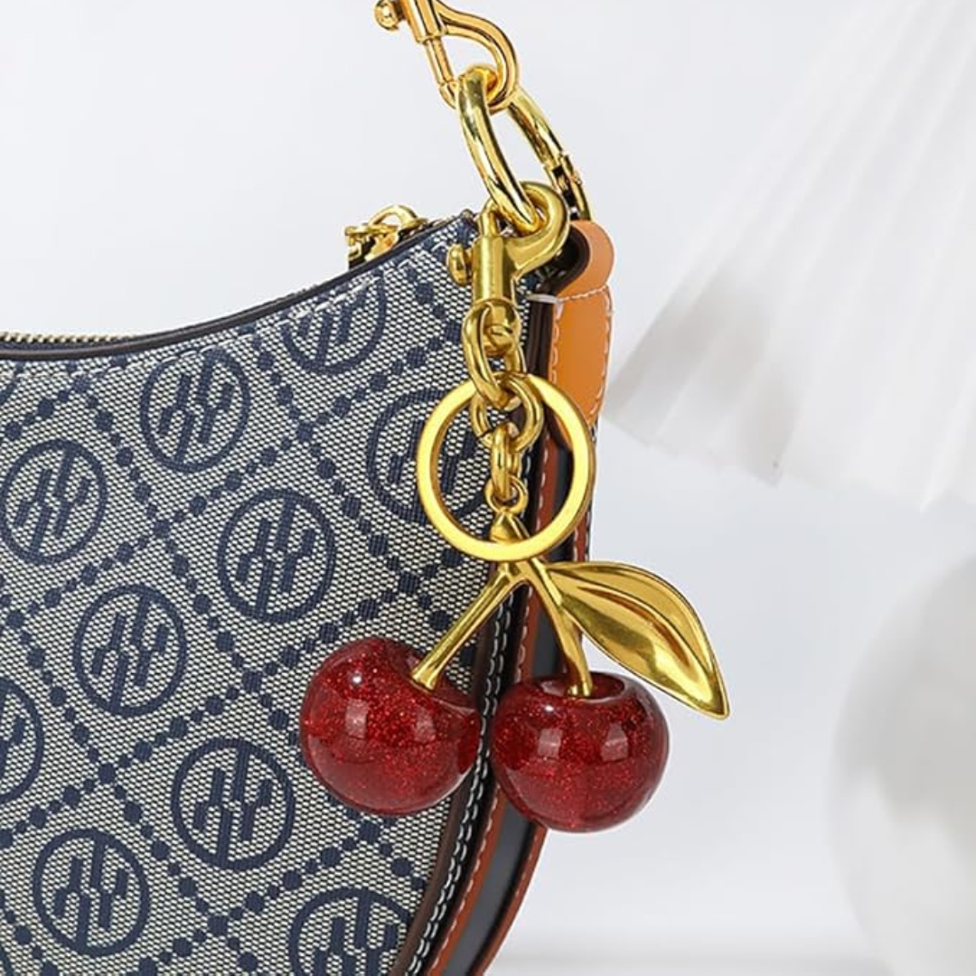Elevate your style with the Cherry Bag Charm, featuring a vibrant glitter resin cherry design that adds a refined sparkle to any accessory. Its sturdy metal split key ring ensures easy attachment to handbags, backpacks, or keys, offering a personalized and elegant touch. Measuring 2.3 by 4.7 inches, this charm strikes the perfect balance between statement and subtlety. Crafted from durable materials, it withstands daily use while maintaining its sophisticated allure, making it a timeless addition to your collection or a thoughtful gift.