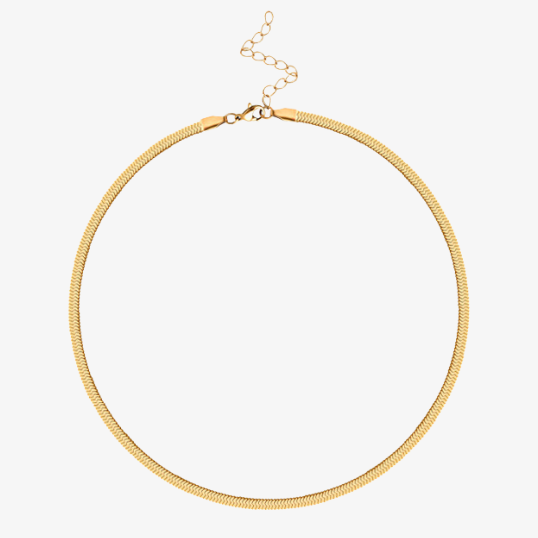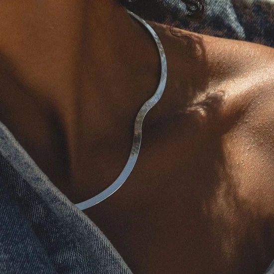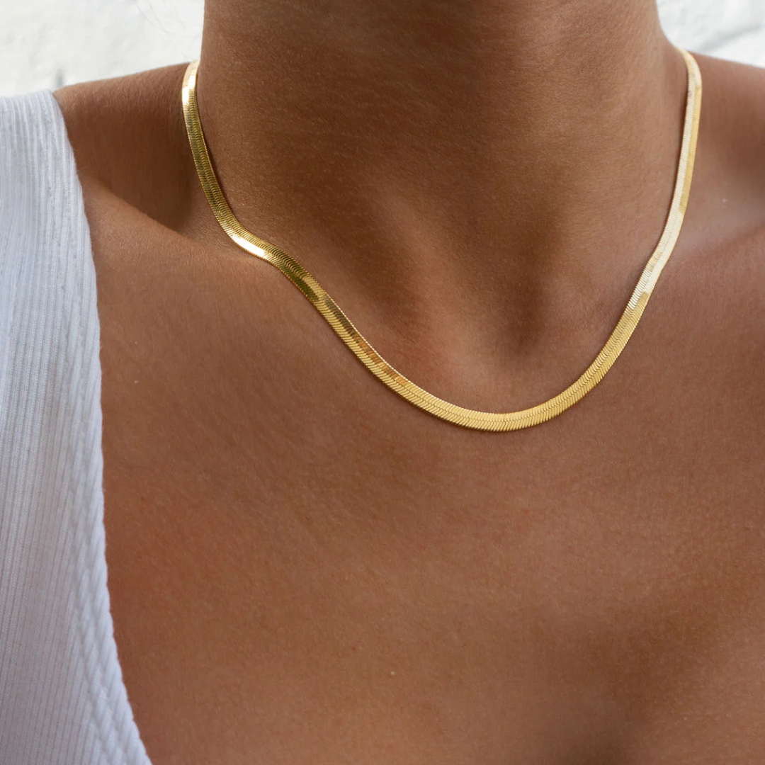 Kendall Snake Chain Necklace, Elevate your look with our classic herringbone necklace, crafted from lustrous 18k gold or silver with a delicate, flat profile featuring intricate V-shaped links that seamlessly interlock. Perfect for layering or wearing solo, this timeless piece adds a touch of sophistication to any outfit.
