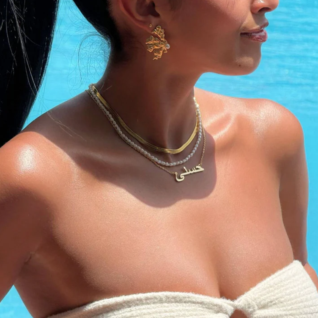 Make a bold statement with our Personalised Arabic Name Necklace. Crafted in shimmering gold or sleek silver, this necklace transforms your chosen name into an enchanting work of art inspired by Arabic calligraphy. Whether for yourself or as a daring gift, it’s a captivating keepsake that celebrates individuality with striking elegance.