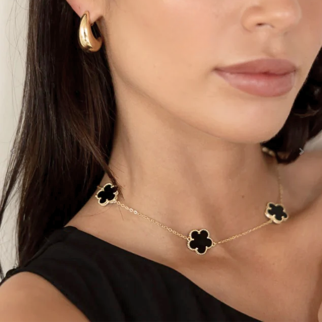 Our jewelry is made from high-quality stainless steel and finished with a luxurious layer of 14k or 18k gold or silver. This durable material resists tarnishing and fading, offering greater longevity than traditional gold, silver, or even platinum. It won’t discolor your skin and retains its brilliant shine over time.