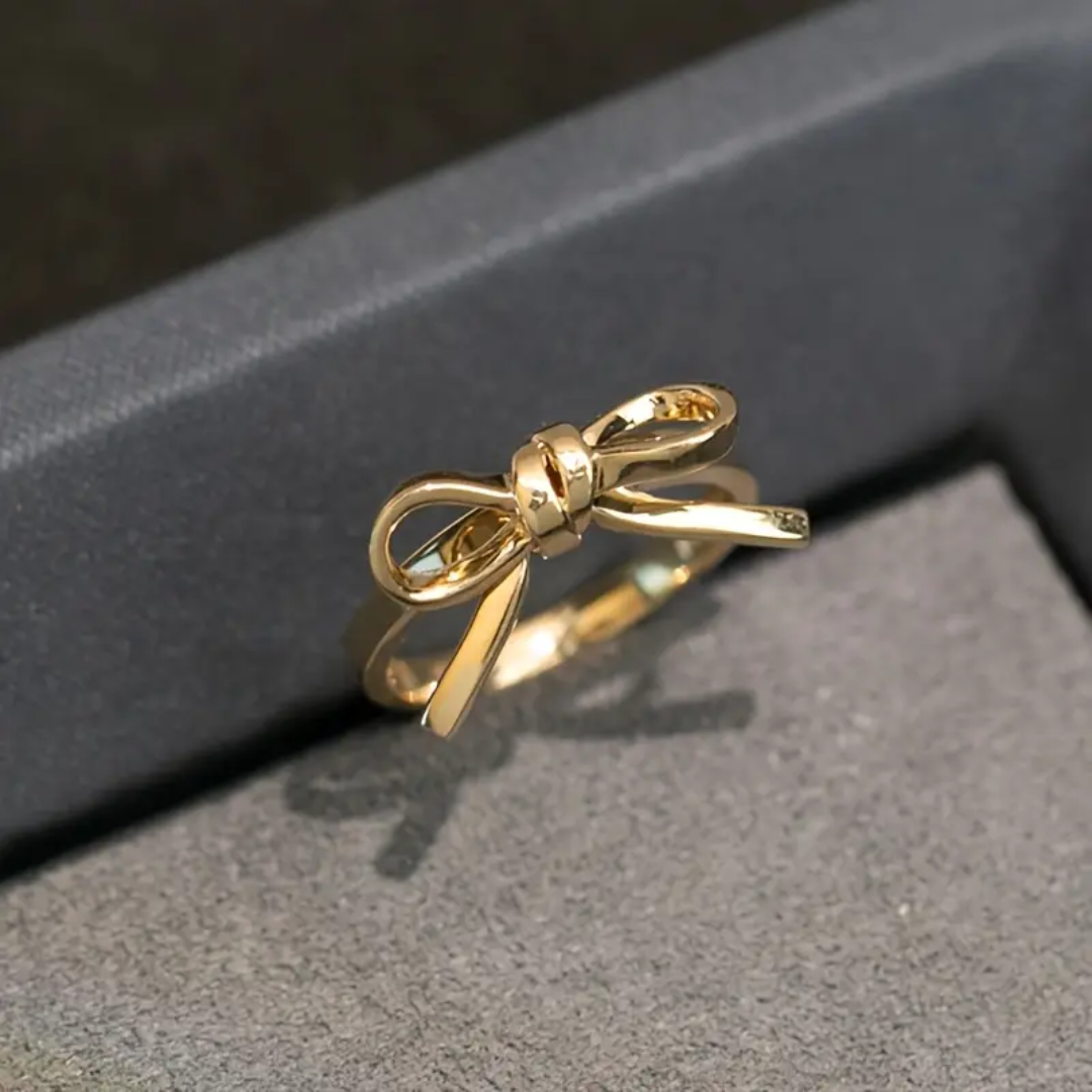 Elevate your gift-giving with this delicate Bow Ring, thoughtfully designed with an adjustable band for a perfect fit. Available in elegant gold and silver finishes, its subtle charm adds a refined touch to any ensemble, making it an ideal present for someone truly special.